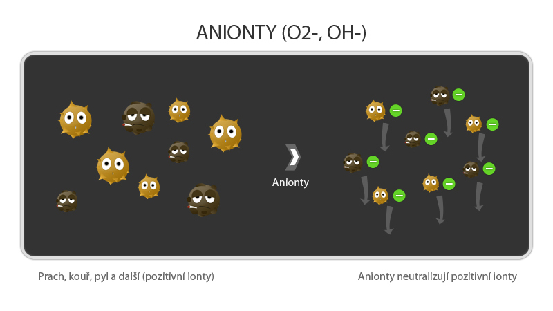 Plazmová čistička s ionizátorem vzduchu, ionizační sprej generující záporné ionty, bezvýměnový filtrační systém, plazmovou vložku je možné mýt v myčce, jednoduchá obsluha pomocí jediného tlačítka, malé rozměry a moderní design
